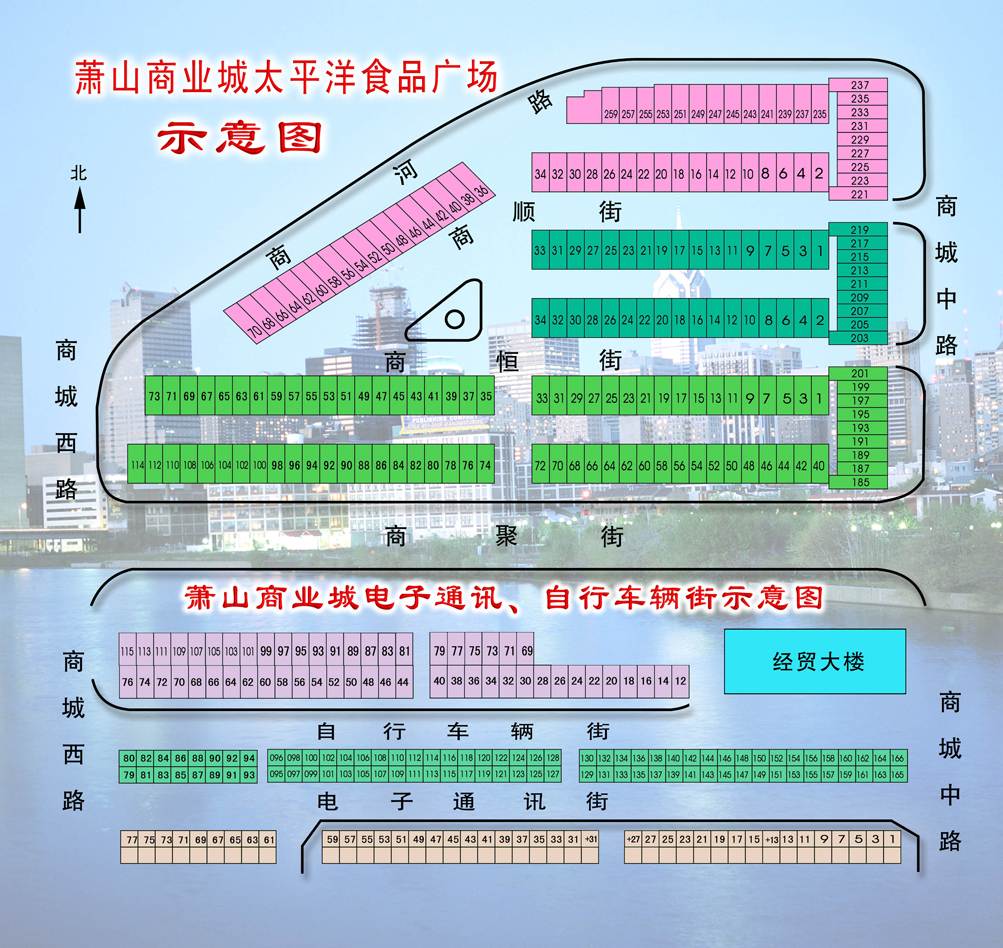 杭州蕭山商業(yè)城太平洋廣場于 2000 年十月開業(yè),市場營業(yè)面積達(dá) 3.6 萬余平方米,占地面積 2.6 萬余平方米,共有營業(yè)房 184 套,采用商住一體化結(jié)構(gòu),市場整體布局合理。