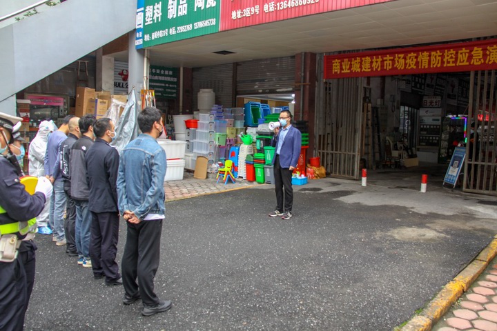 為加強各市場疫情防控意識,完善防疫應急處理流程,深化“無疫單元”建設,10月8日下午,蕭山商業城在建材市場開展常態化疫情防控應急演練。
