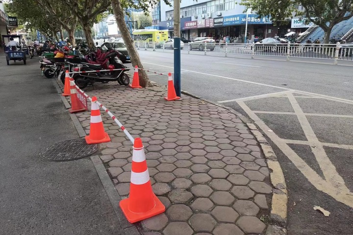 10月13日,五金市場管理人員把護欄,招牌,樁頭設置好,并在經(jīng)營戶宣傳設置臨時卸貨區(qū)的信息。