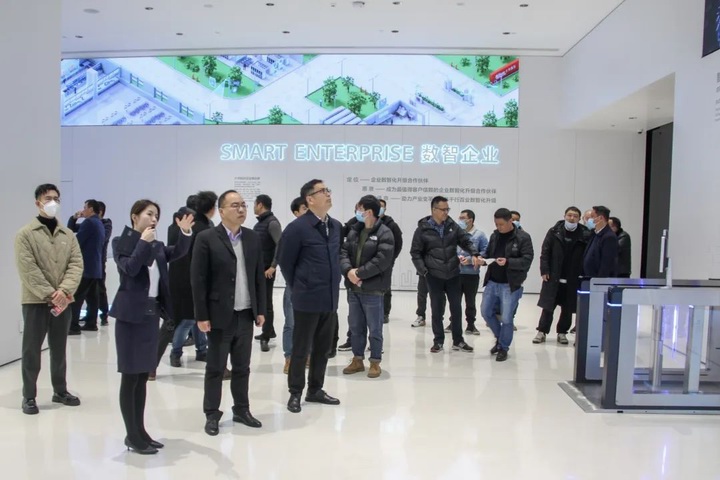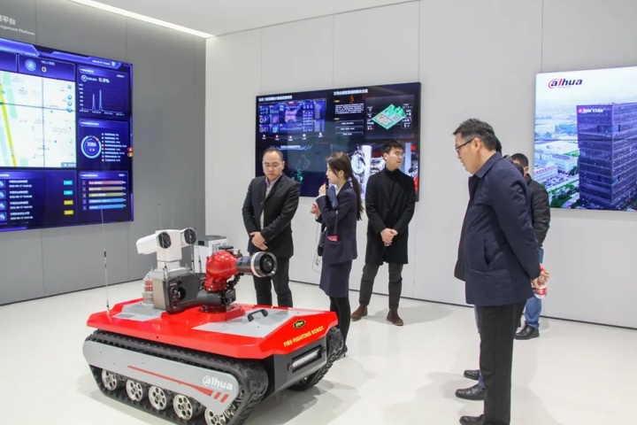 隨后,來到位于濱江的浙江大華技術(shù)股份有限公司,參觀人員在現(xiàn)場工作人員的陪同和講解下,觀摩了大華公司各類產(chǎn)品展廳,悉心聽取了機器視覺、視頻協(xié)作、智慧消防、智慧儲存、智慧顯示、智慧控制等各門類產(chǎn)品的技術(shù)構(gòu)成及推廣應(yīng)用情況。
