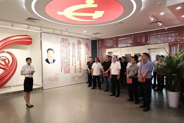 公司黨員在黨群服務中心講解員的帶領下參觀了黨建宣傳展廳。展廳以“奔競不息、勇立潮頭”為主題,通過時代回想、黨建繪卷、先鋒模范、使命征程四個篇章,用大量的文字、圖片結合多媒體影像,展示了一代代人共建蕭山的美好點滴。