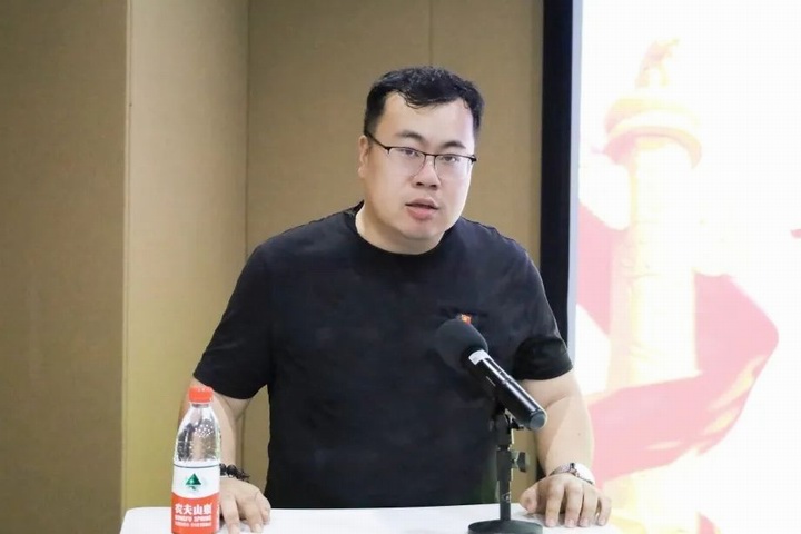 公司總經理助理金利兵傳達杭州市學習貫徹習近平新時代中國特色社會主義思想主題教育動員大會精神