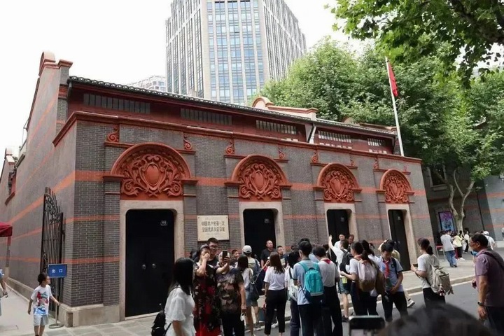 國旗飄揚(yáng),梧桐掩映。上海市黃浦區(qū)興業(yè)路76號,石庫門建筑靜靜坐落,外墻青紅磚交錯,礬紅色雕花門楣,黑漆大門,莊嚴(yán)肅穆。1921年7月23日晚,中國共產(chǎn)黨第一次全國代表大會在這里拉開帷幕。