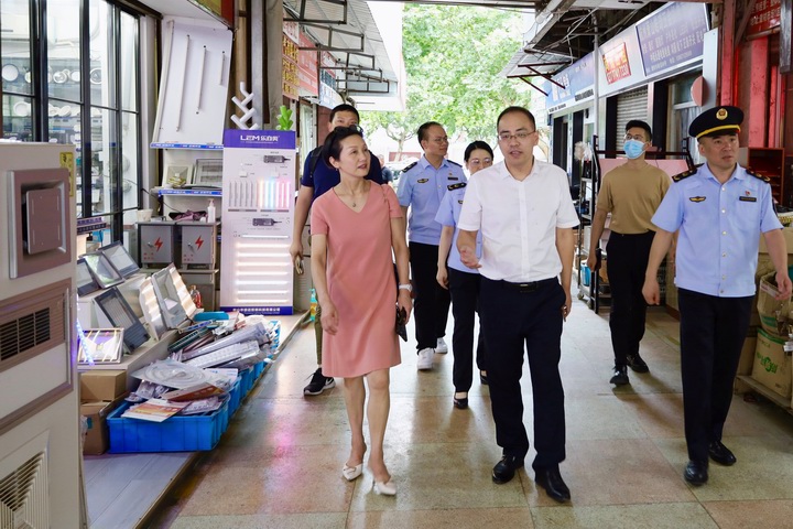 7月25日,杭州市市場監管局行政審批處處長傅曉紅一行蒞臨商業城,對市場內小微企業的發展現狀進行實地走訪調研。
