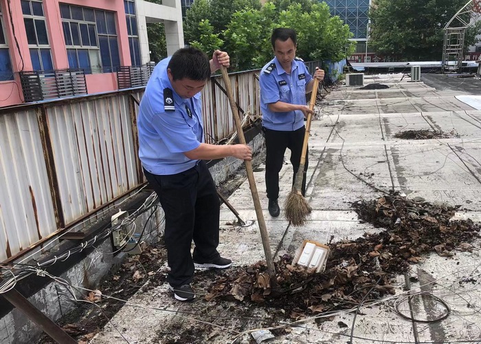7月24日,市場(chǎng)一處營(yíng)業(yè)房出現(xiàn)了屋頂下水口來(lái)不及排水導(dǎo)致雨水倒灌、滲漏的情況,管理人員聞?dòng)嵑螅渤鰟?dòng)4人,爬上屋頂對(duì)排水溝和排水口進(jìn)行緊急疏通和清淤,保障了雨水管排水通暢、雨水溝內(nèi)無(wú)積水,此次共清理淤泥、雜物和樹(shù)葉9袋。