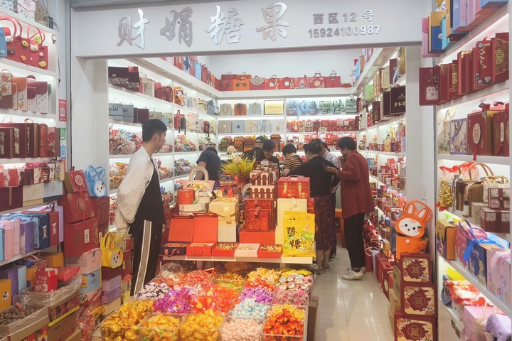 根據過去幾年的銷售數據顯示,蕭山商業城喜慶糖果類旺季主要集中在秋季到春季。在這個時間段來到商業城副食品市場喜慶糖果類銷售區,基本上每家店鋪都有客人在選購商品,有的在挑選糖果的品類,有的在挑選包裝禮盒。